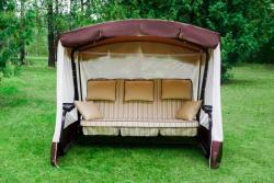Тент: Тент ткань с водоотталкивающей отделкой 100% п/э плотность 120г/м2 , с противомоскитной сеткой (полотно гардинное основовязаное 100% п/э плотность 39г/м2  - фиксация сетки на тканевом тенте осуществляется с помощью горизонтальных и вертикальных застежек – «молний».