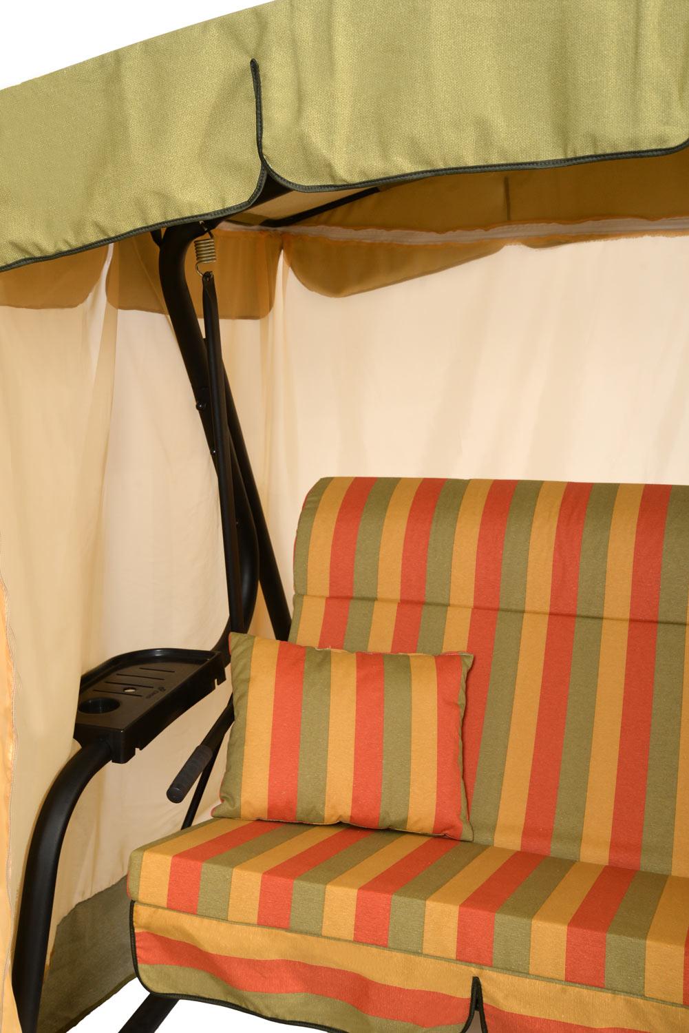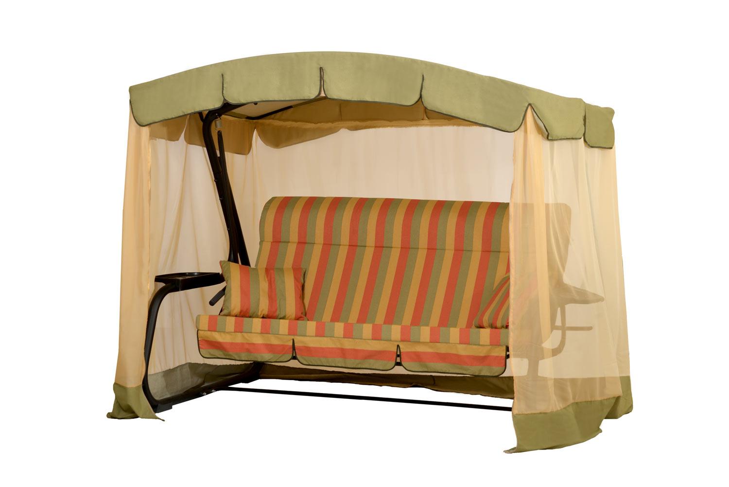 Тент: ткань с водоотталкивающей отделкой 100% п/э плотность 125г/м2 или 90г/м2 , с противомоскитной сеткой (полотно гардинное основовязаное 100% п/э плотность 39г/м2 - фиксация сетки на тканевом тенте осуществляется с помощью горизонтальных и вертикальных застежек – «молний».